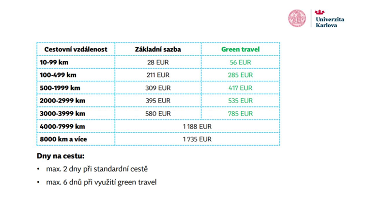 - Jednotkový příspěvek na dopravu dle vzdálenosti mezi domácí institucí a hostující institucí v zahraničí.